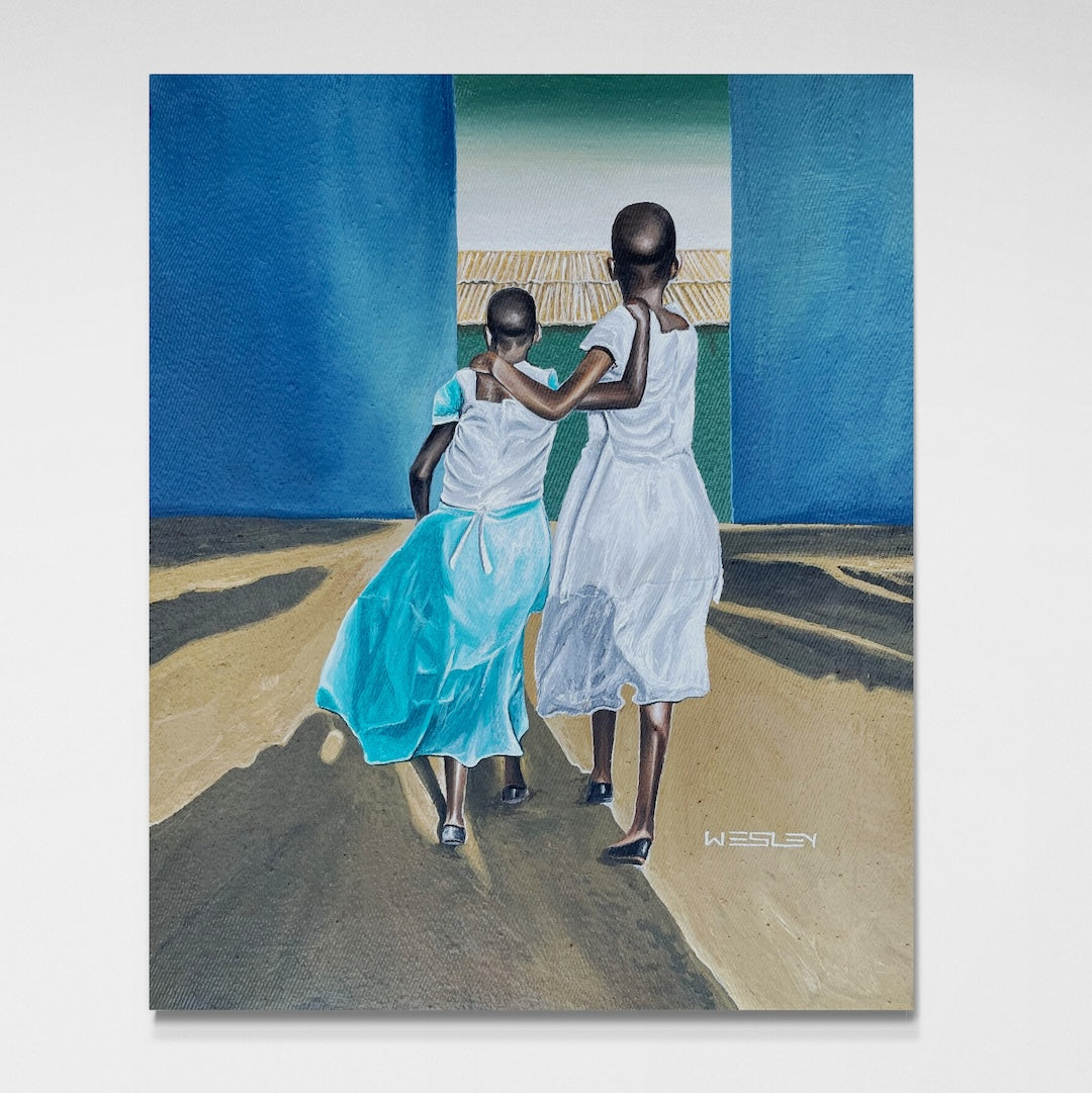 This piece was created at the Uweza Art Gallery by a youth artist living in the Kibera slum of Nairobi Kenya. 60% of the proceeds of this sale will go to the artist and 40% will go toward the operations of our art gallery, which provides opportunities for creative expression and development of artistic talent for children and youth living in Kibera.