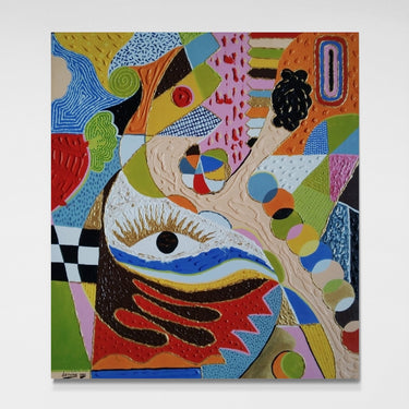This piece was created at the Uweza Art Gallery by a youth artist living in the Kibera slum of Nairobi Kenya. 60% of the proceeds of this sale will go to the artist and 40% will go toward the operations of our art gallery, which provides opportunities for creative expression and development of artistic talent for children and youth living in Kibera.