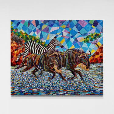 Shipped from Nairobi, Kenya via DHL as rolled canvas in a shipping tube or delivered within Nairobi stretched on frame.