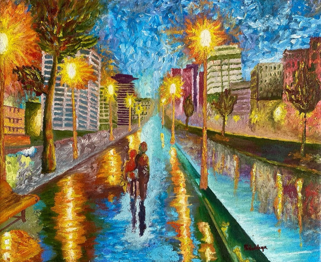 Shipped from Nairobi, Kenya via DHL as rolled canvas in a shipping tube or delivered within Nairobi stretched on frame.