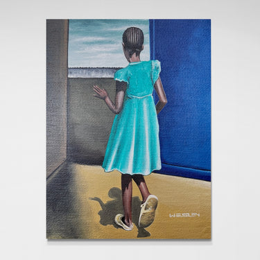This piece was created at the Uweza Art Gallery by a youth artist living in the Kibera slum of Nairobi Kenya. 60% of the proceeds of this sale will go to the artist and 40% will go toward the operations of our art gallery, which provides opportunities for creative expression and development of artistic talent for children and youth living in Kibera.