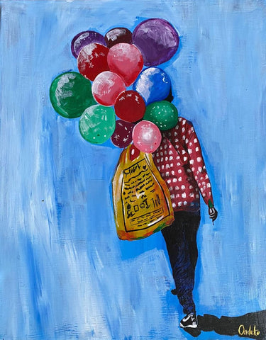 This piece was created at the Uweza Art Gallery by a youth artist living in the Kibera slum of Nairobi Kenya. 60% of the proceeds of this sale will go to the artist and 40% will go toward the operations of our art gallery, which provides opportunities for creative expression and development of artistic talent for children and youth living in Kibera.